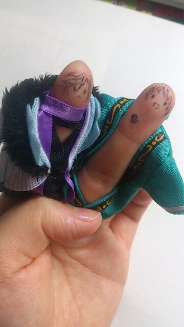 原稿あきたので気分転換にわたしもお衣装着せみた!おとくんほしいよぅ(;ω;) そしてセシルちゃんがもはや服ではないので指に着せるの大変だったよwww